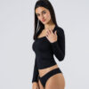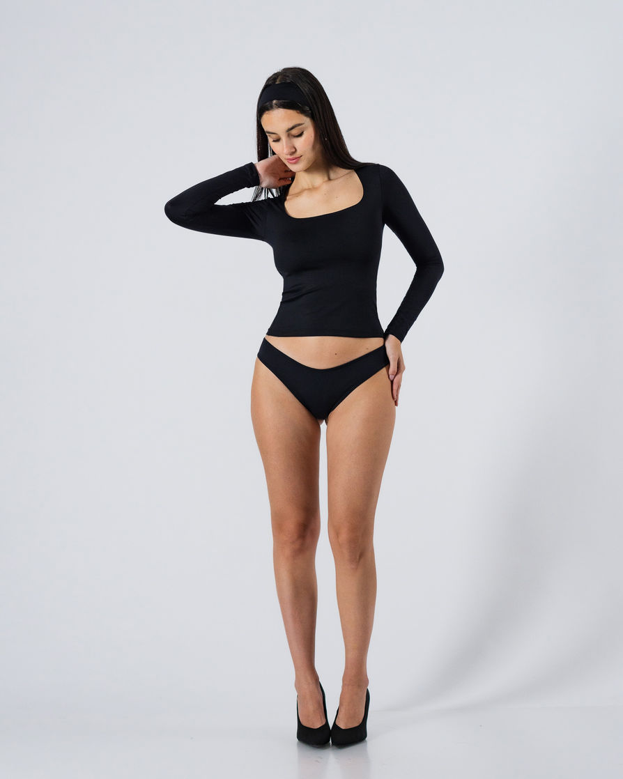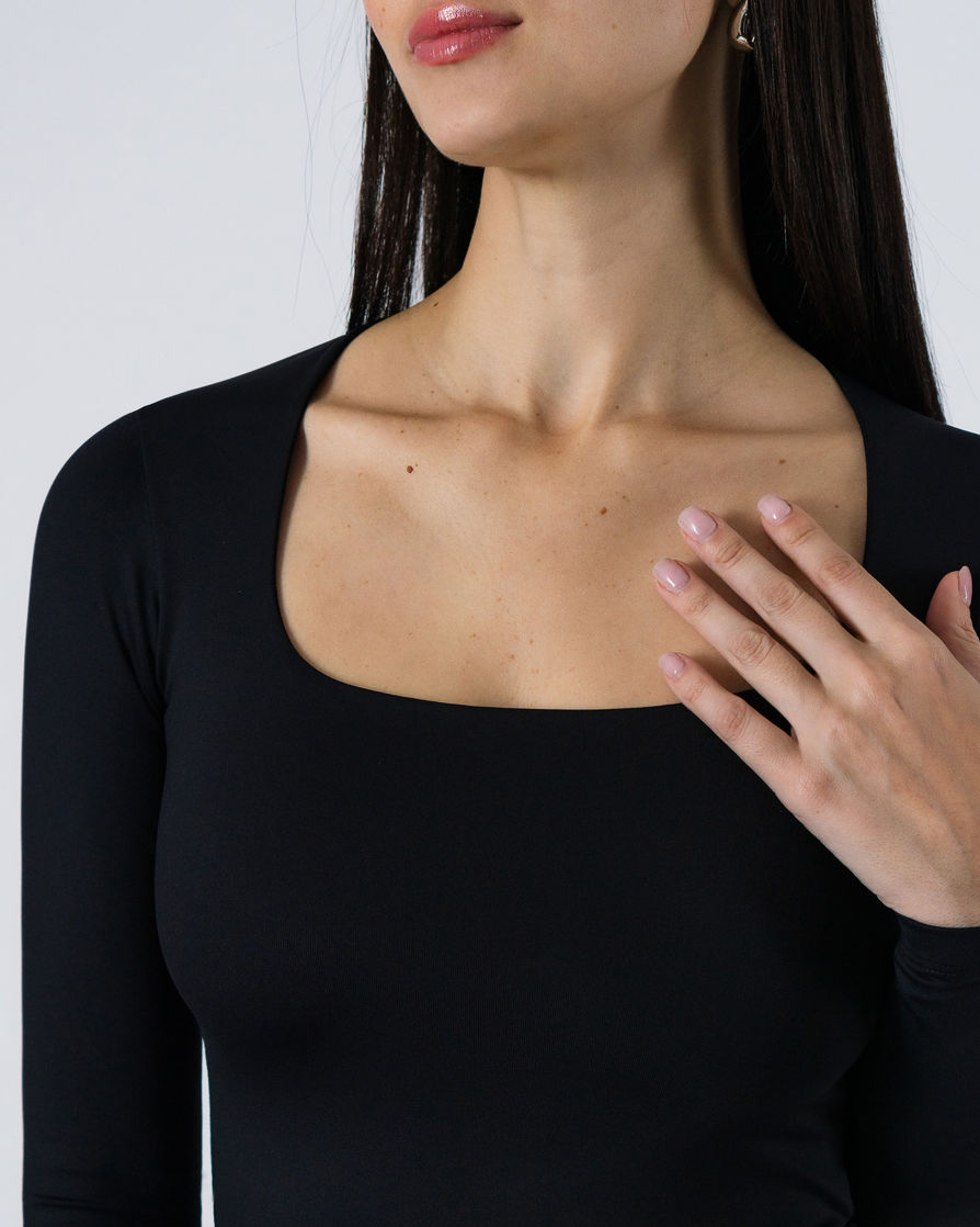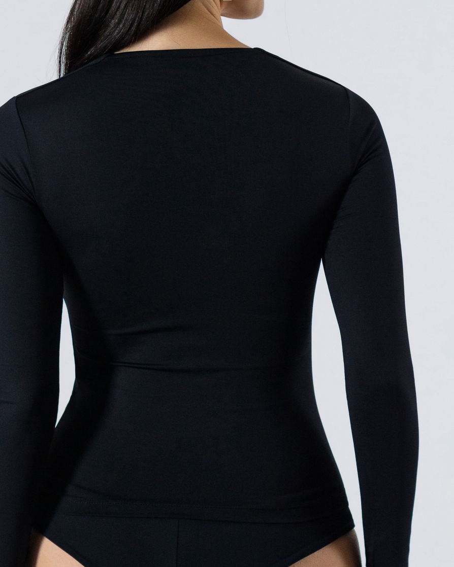 Square-neck long-sleeve tee with full front inner lining. Perfect silhouette and a stretchy fit. A high-quality piece crafted from premium Brazilian lycra. Features: