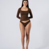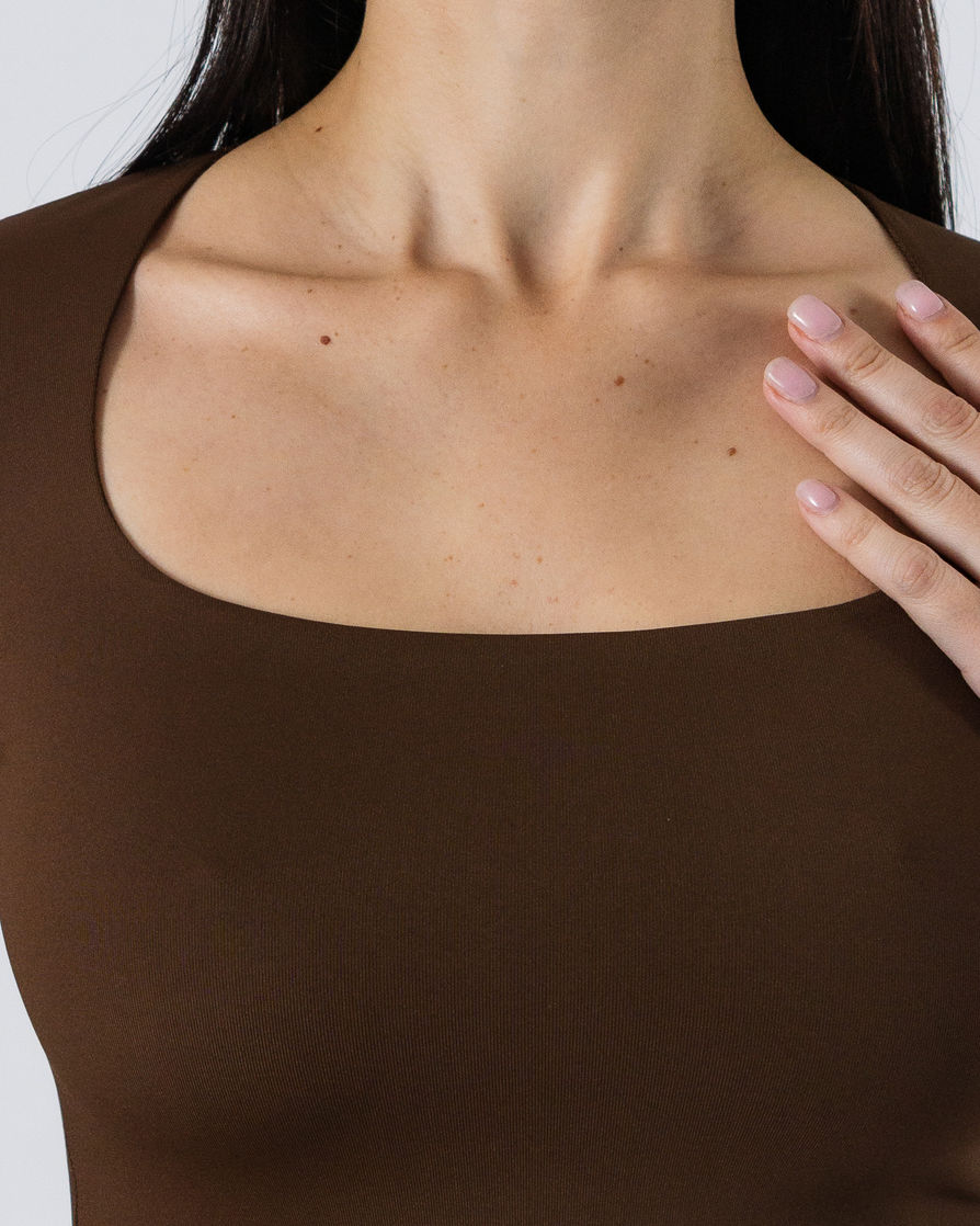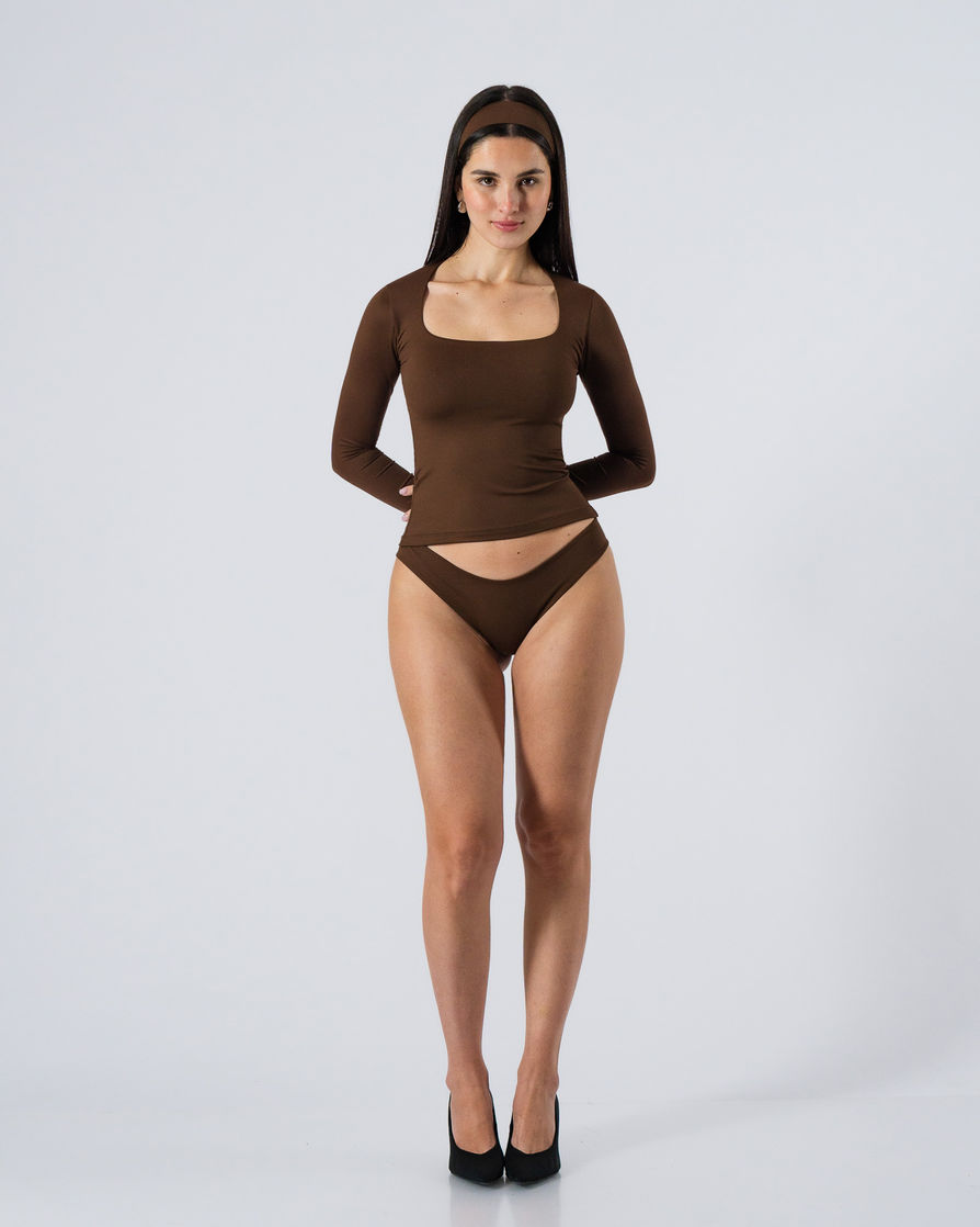 Square-neck long-sleeve tee with full front inner lining. Perfect silhouette and a stretchy fit. A high-quality piece crafted from premium Brazilian lycra. Features: