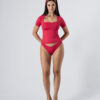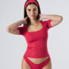 Square-neck short-sleeve tee with full front inner lining. Perfect silhouette and a stretchy fit. A high-quality piece crafted from premium Brazilian lycra. Features: